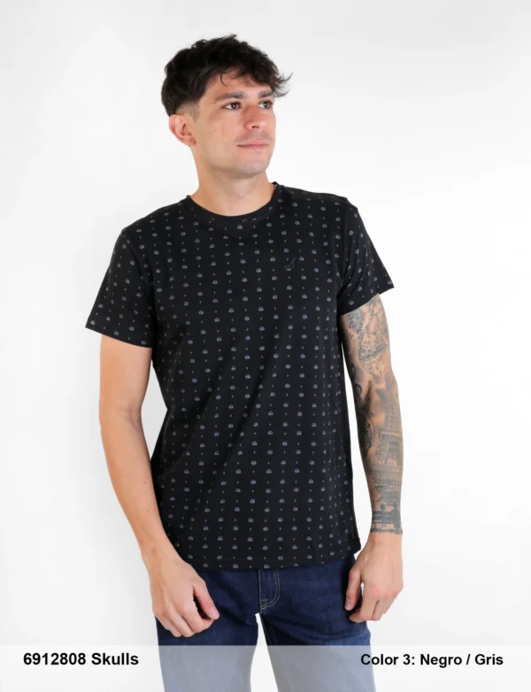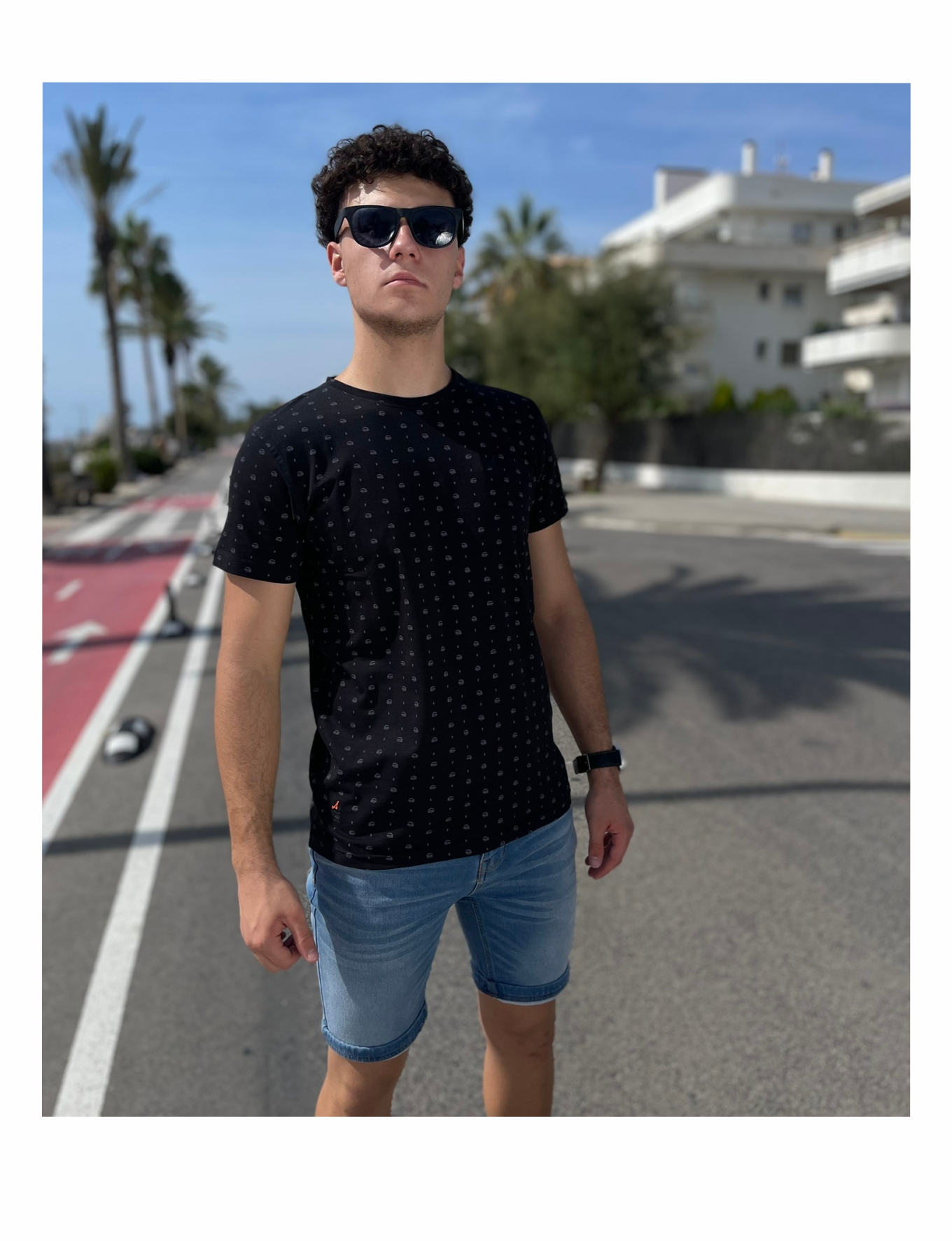 Descripción: Cuello redondo acanalado, manga corta, corte regular, camiseta estampada, logo engomado en el pecho.