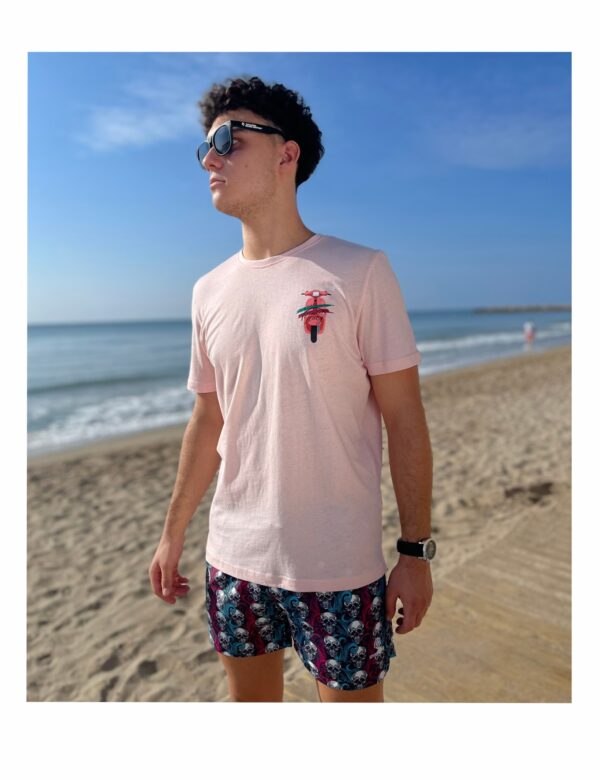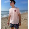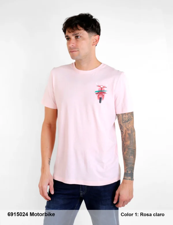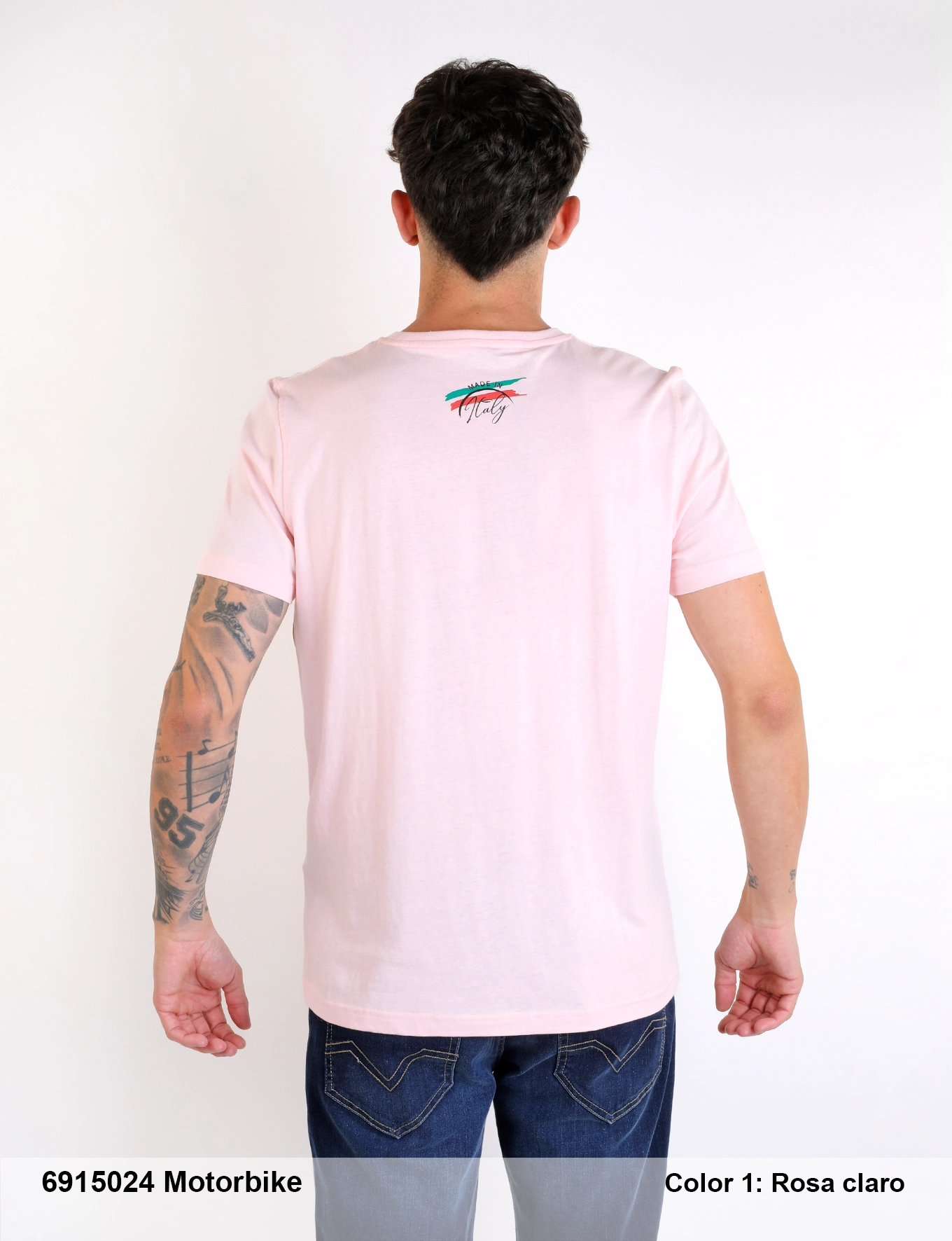 Descripción: Cuello redondo acanalado, manga corta, corte regular, serigrafía suave en parte delantera y trasera.