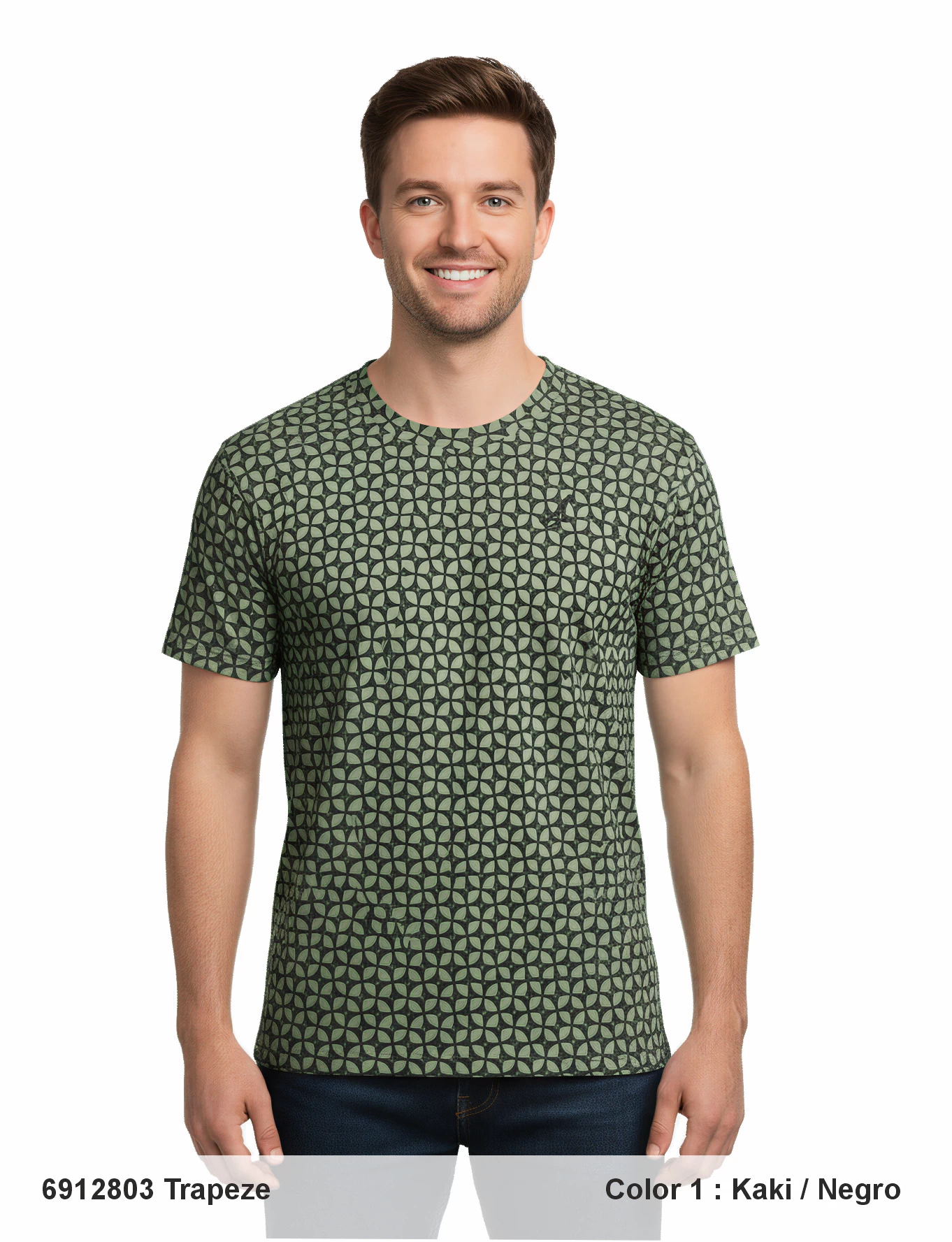 Descripción: Cuello redondo acanalado, manga corta, corte regular, camiseta estampada, logo engomado en el pecho.