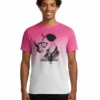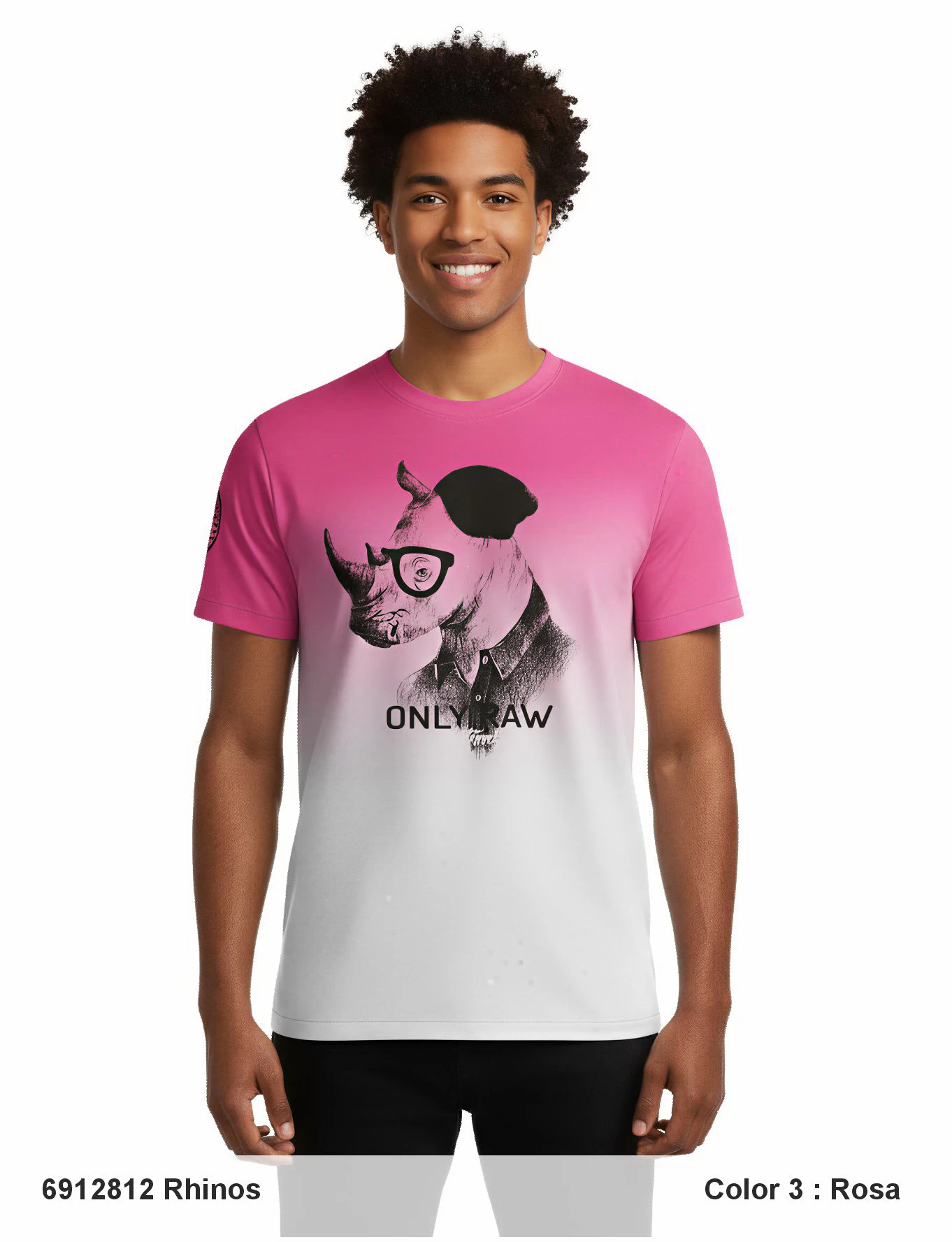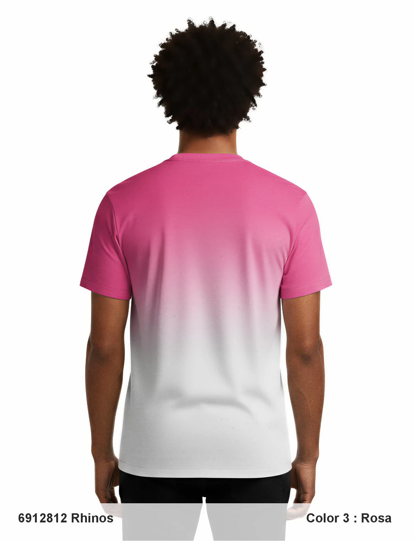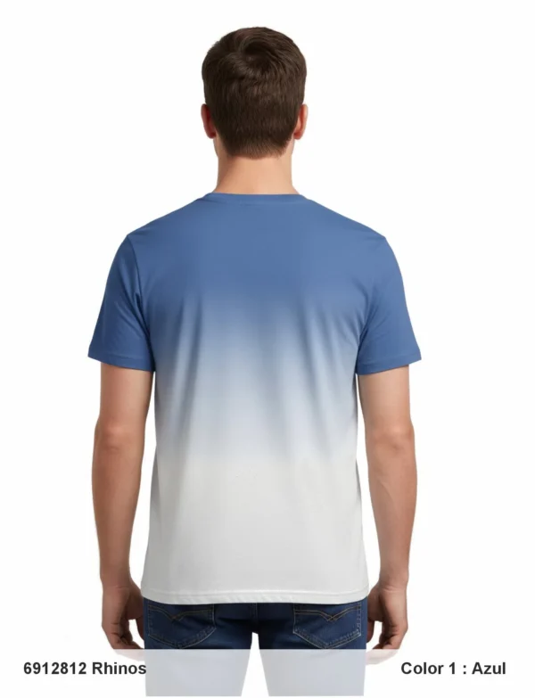 Descripción: Cuello redondo acanalado, mang corta, corte regular, serigrafía plana y suave en la parte delantera y en manga, color degradado en los bajos.