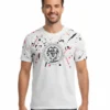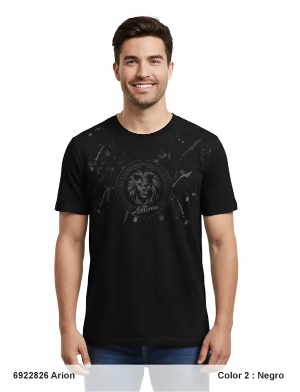Descripción: Cuello redondo estampado, manga corta, corte regular, estampado en mangas y parte alta, serigrafía sobrepuesta delante.