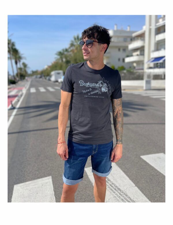 Descripción: Cuello redondo acanalado, manga corta, corte regular, serigrafía suave.