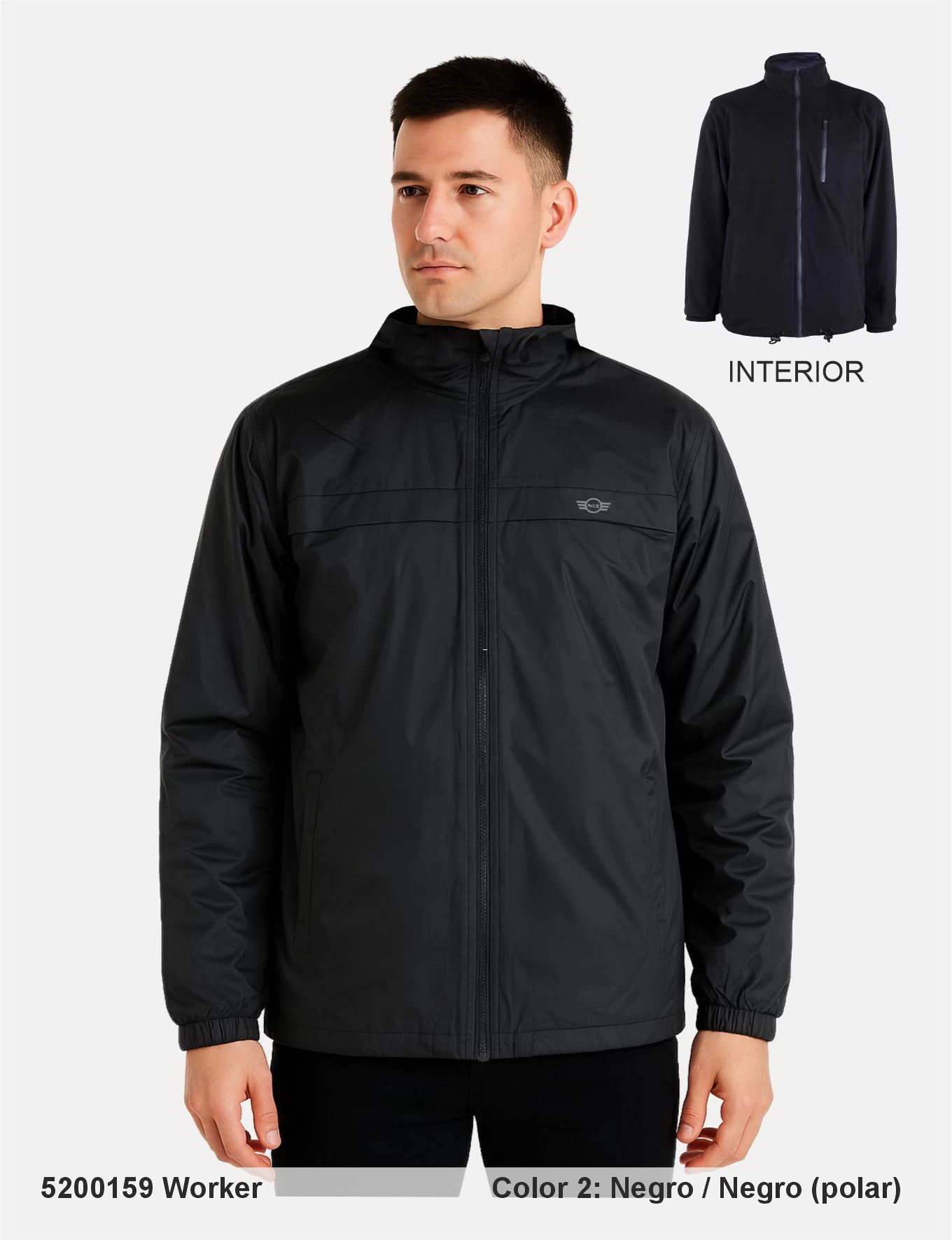 Descripción: Chaqueta reversible con cremallera de plástico, puños elásticos, cuerda elástica en el bajo para un mayor ajuste, bolsillos insertados, logo reflectante, capucha plegable con cremallera de plástico, bolsillo en el pecho( parte interna).