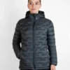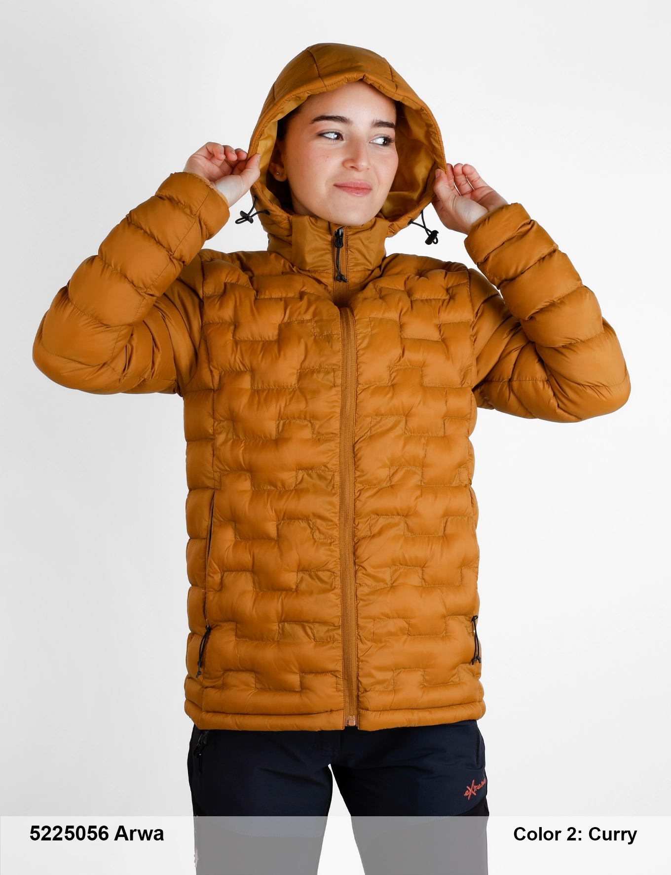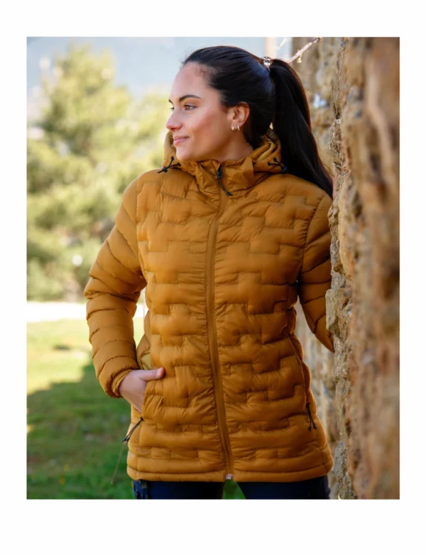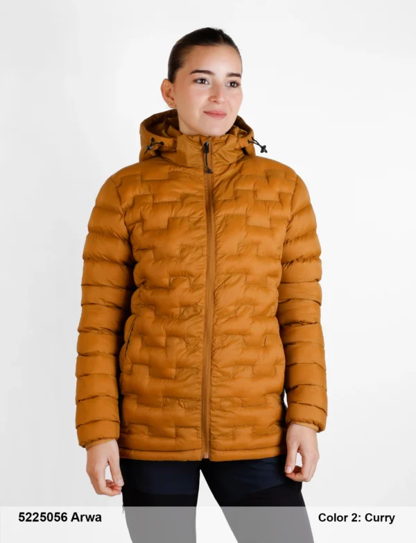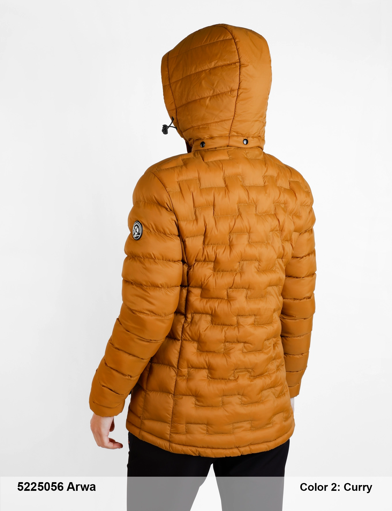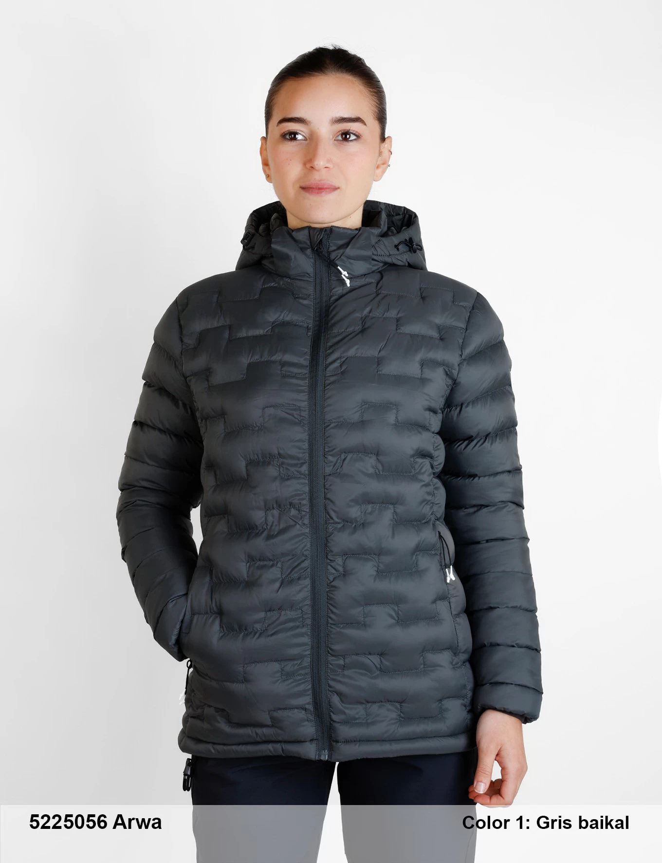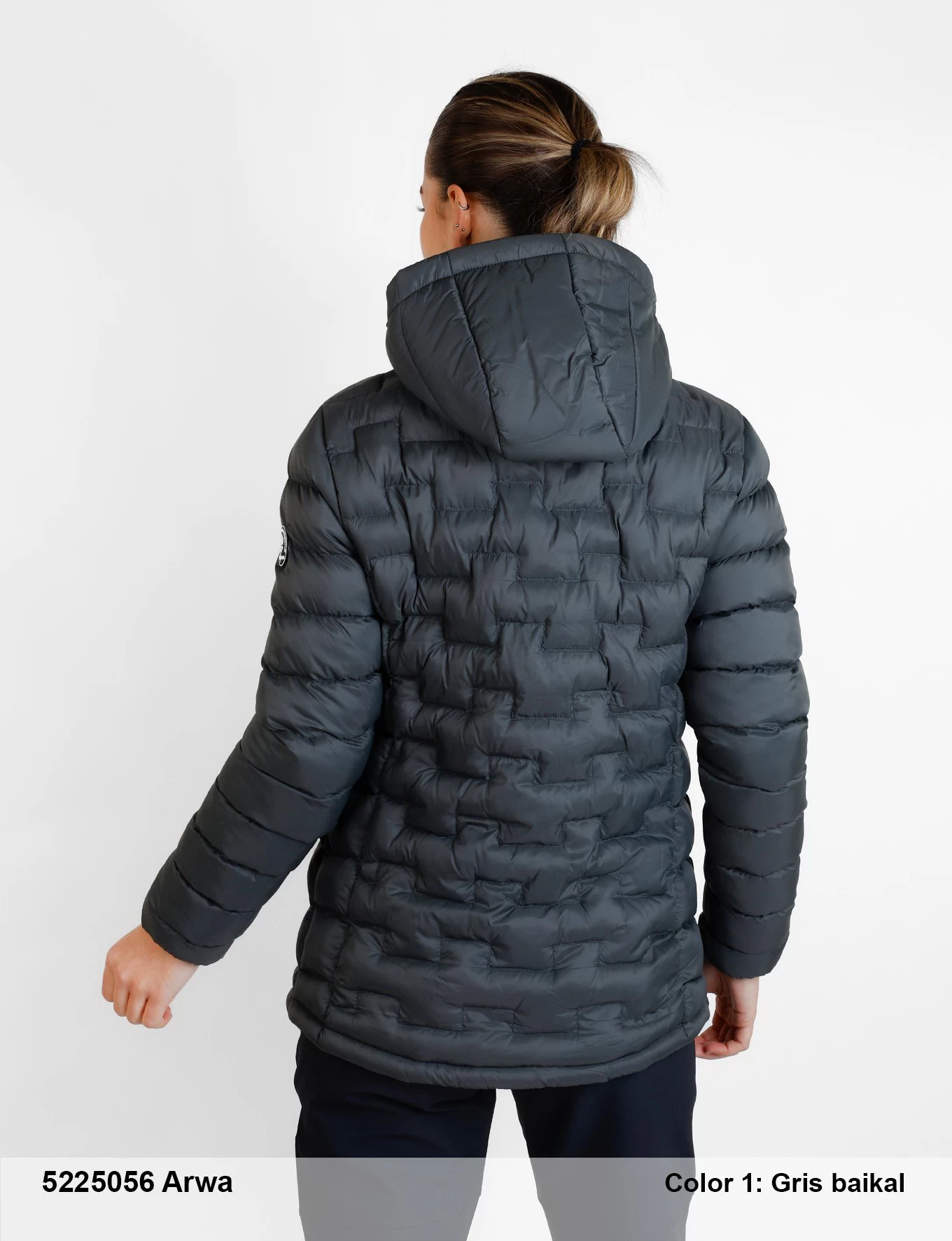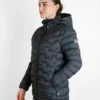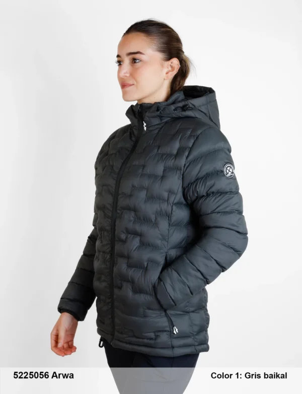 Descripción: Cremallera central invertida, dos bolsillos delanteros con cremalleras invisibles, protector de barbilla, puños con ribete elástico, cordón de ajuste en el dobladillo, capucha desmontable, bag engomado en manga.