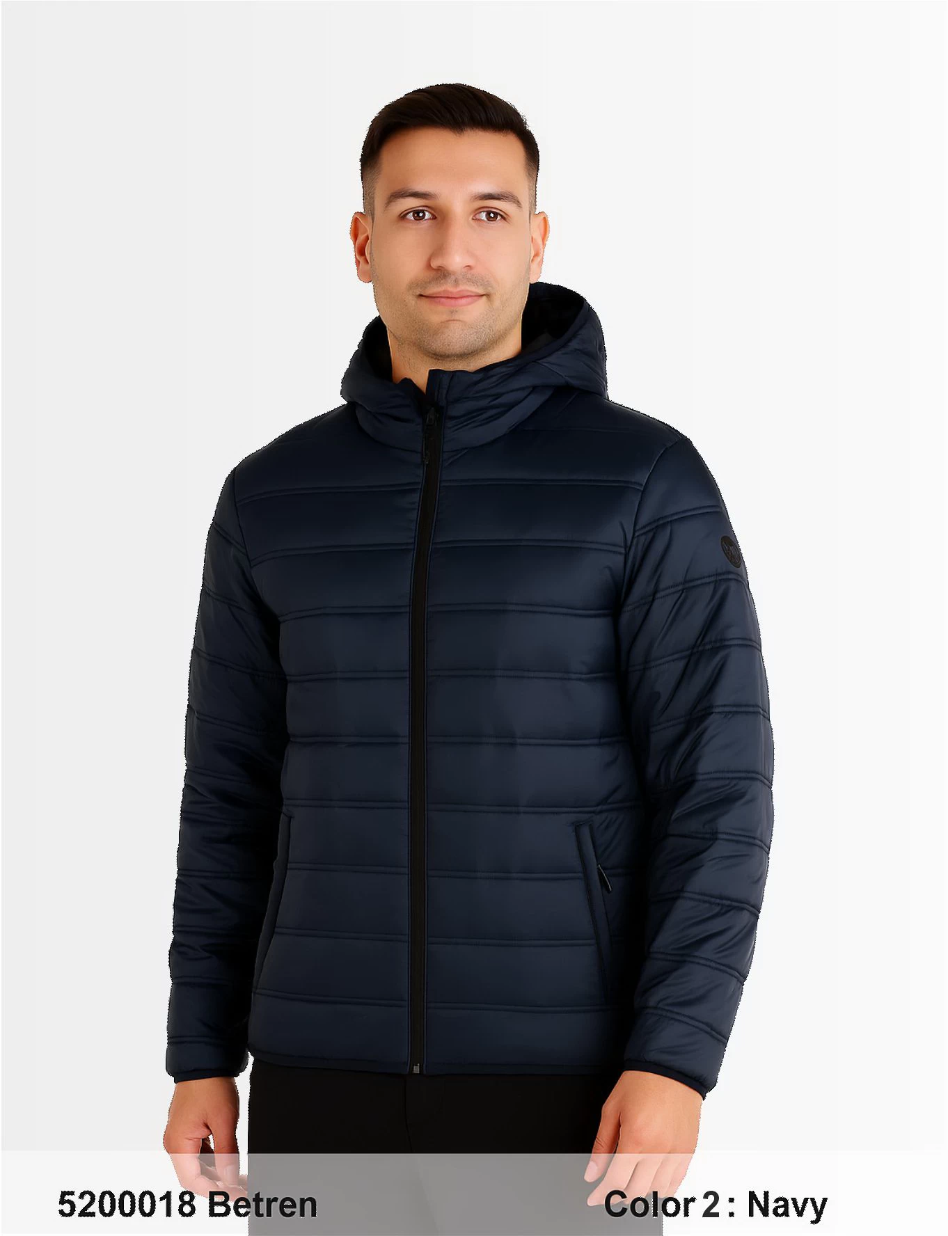 Descripción: Cierre central con cremalleras de plástico, ribete elástico en puños, capucha y bajos. Bolsillos insertados con cremallera, protector de barbilla, capucha extraíble, bolsillo en el interior.