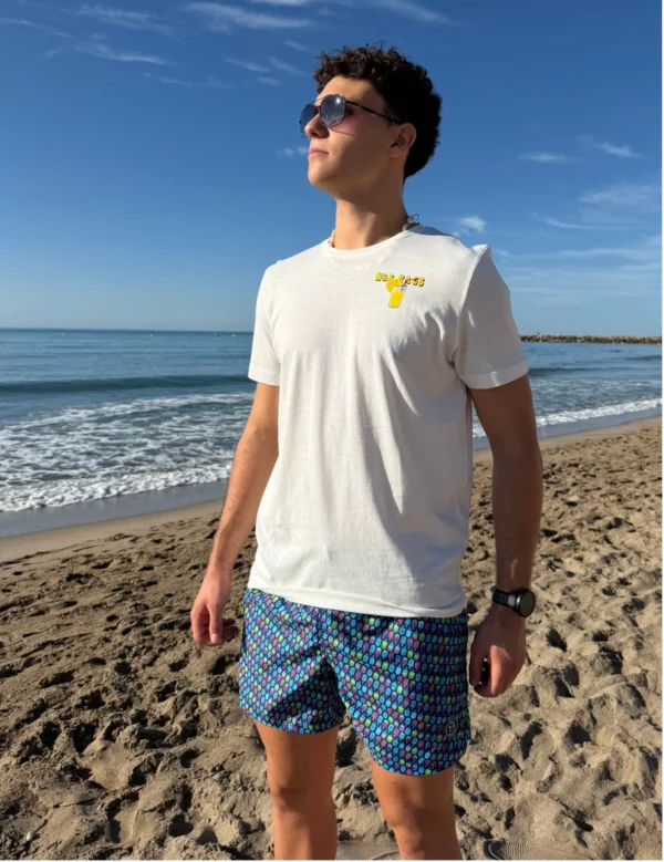 Descripción: Cintura elástica, cordón regulable, slip de rejilla, bolsillos delanteros rectos, bolsillo trasero con cremallera invertida bicolor, insignia de goma, etiqueta tejida con logo.