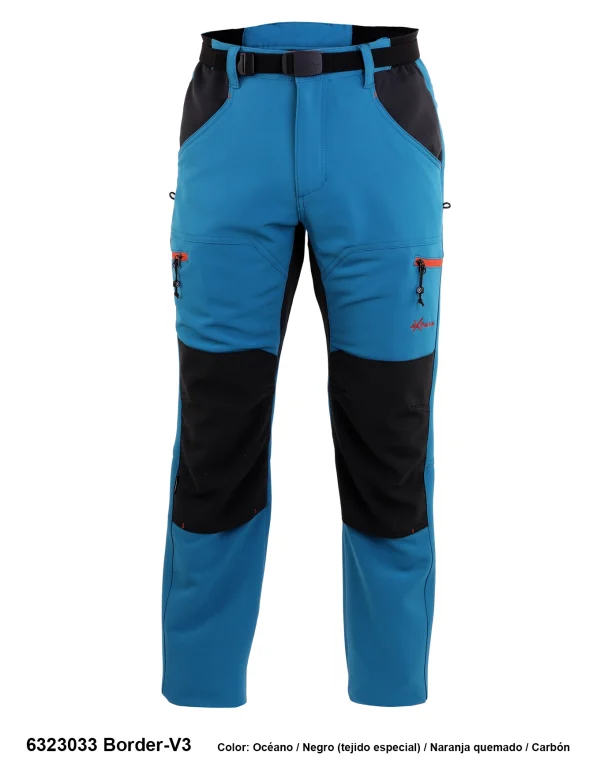Descripción: Cintura semi-elástica, banda elástica con logo, con cierre de botón corchete y cinturón elástico ajustable, seis bolsillos: los delanteros tipo francés, laterales y traseros con cremalleras invertidas a contraste, pinzas y tejido especial en las rodillas con abertura para rodilleras, goma ajustable en los bajos y logo bordado.