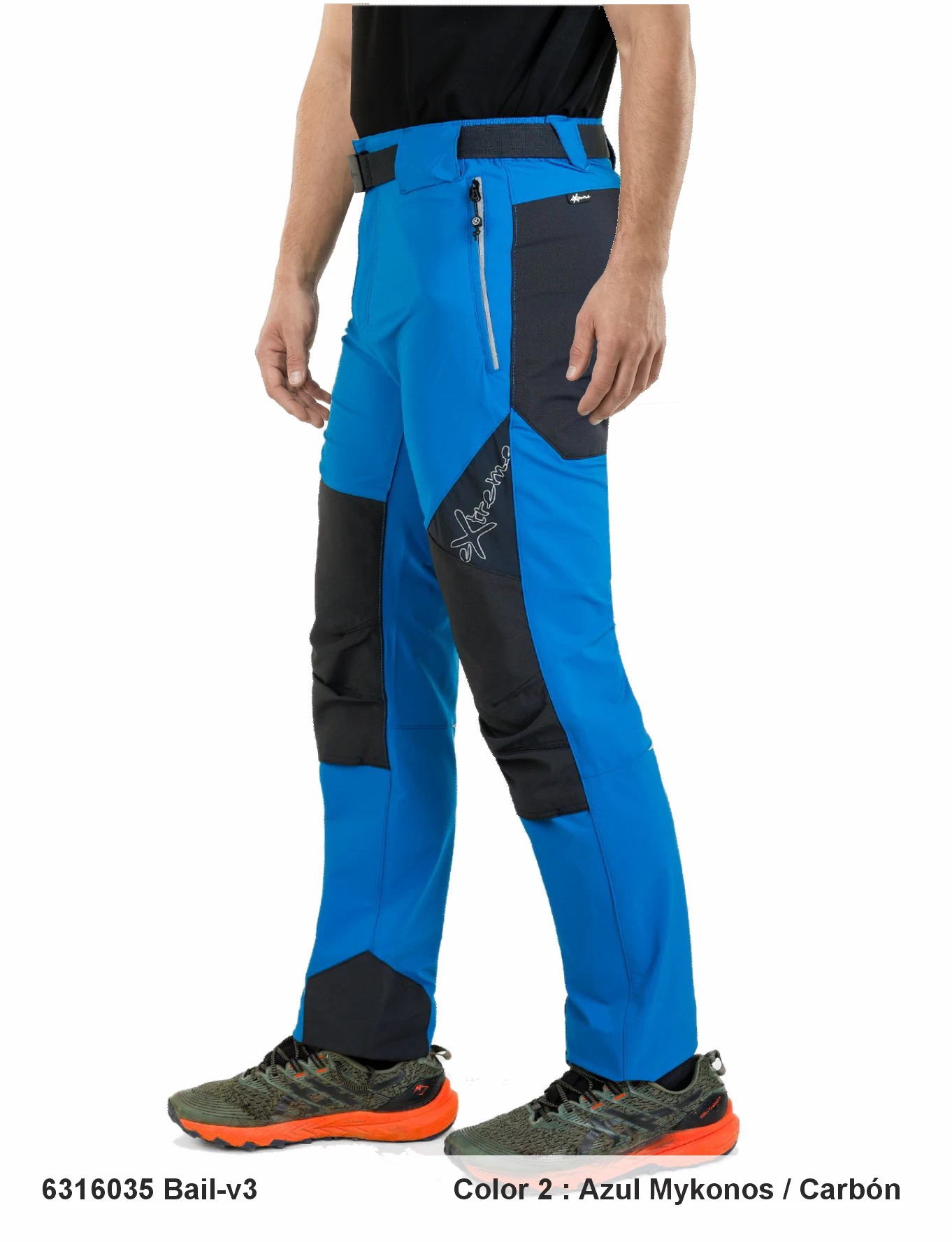 Descripción: Cintura semi-elástica con cierre de botón a presión, cinturón elástico ajustable, cuatro bolsillos( los delanteros y trasero medio insertados , el lateral es pequeño con cremallera invertida y logo reflectante), tejido anti-rozaduras en culera, rodillas y bajos, pinzas en las rodillas, goma ajustable en los bajos, ribete reflectante en la parte trasera, logo reflectante.