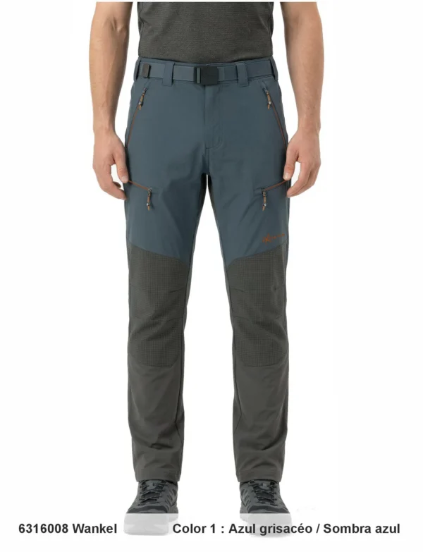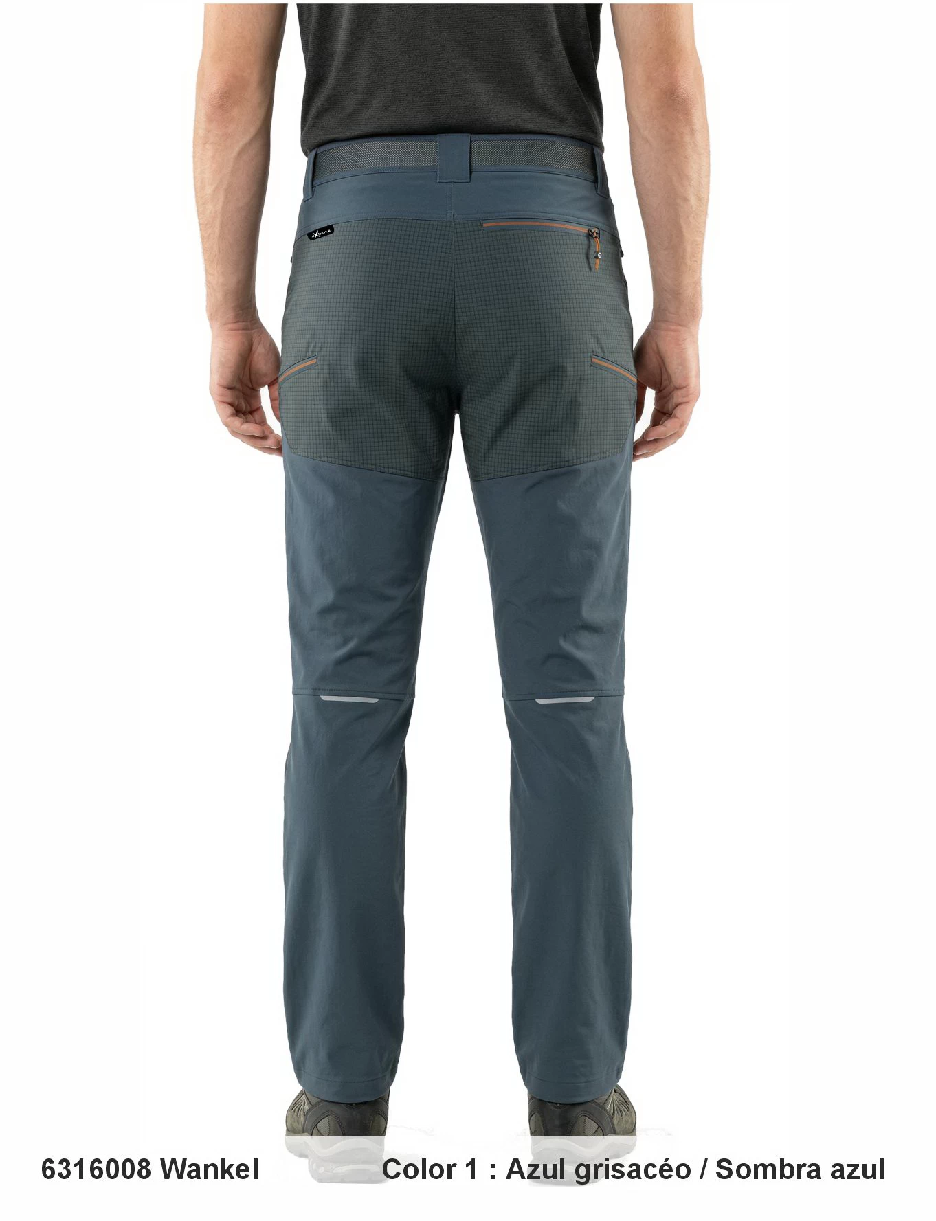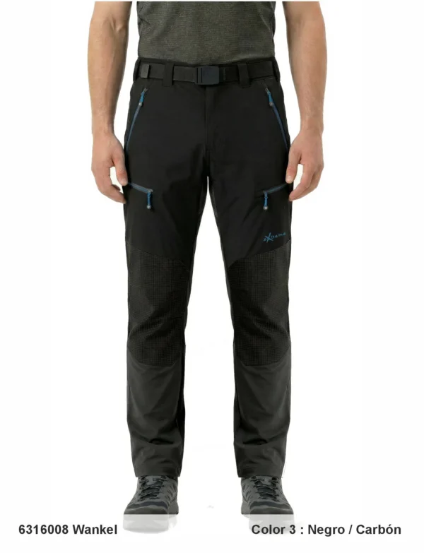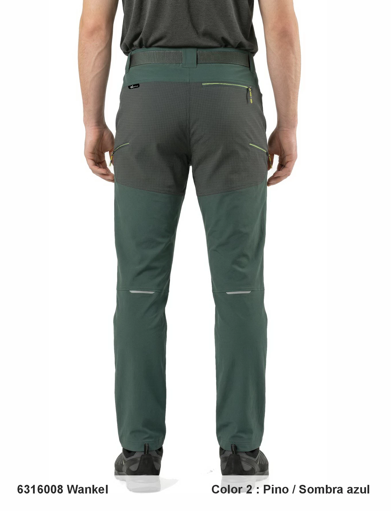 Descripción: Cintura semi-elástica con cierre de botón a presión, cinturón elástico ajustable, cinco bolsillos con cremalleras invertidas bicolor, pinzas en las rodillas, goma ajustable en los bajos, ribete reflectante en la parte trasera, logo bordado.