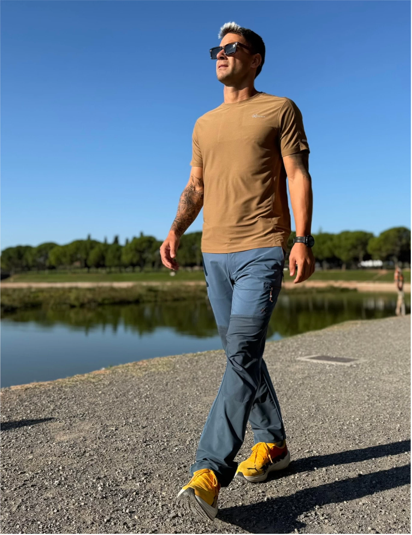 Prestaciones: Tejido tratado con DWR que repele el agua, protección solar UV 50º, secado rápido, transpirable y bielástico.