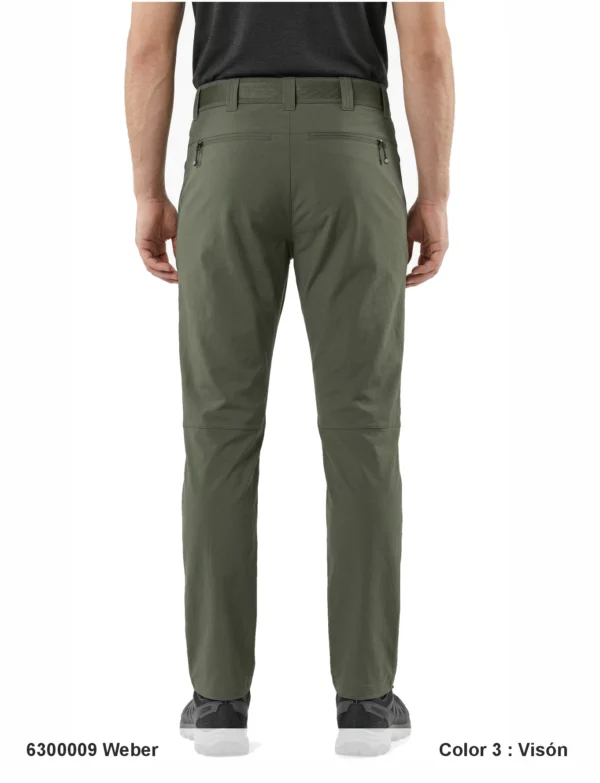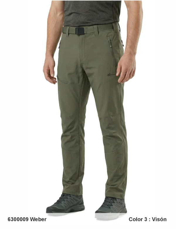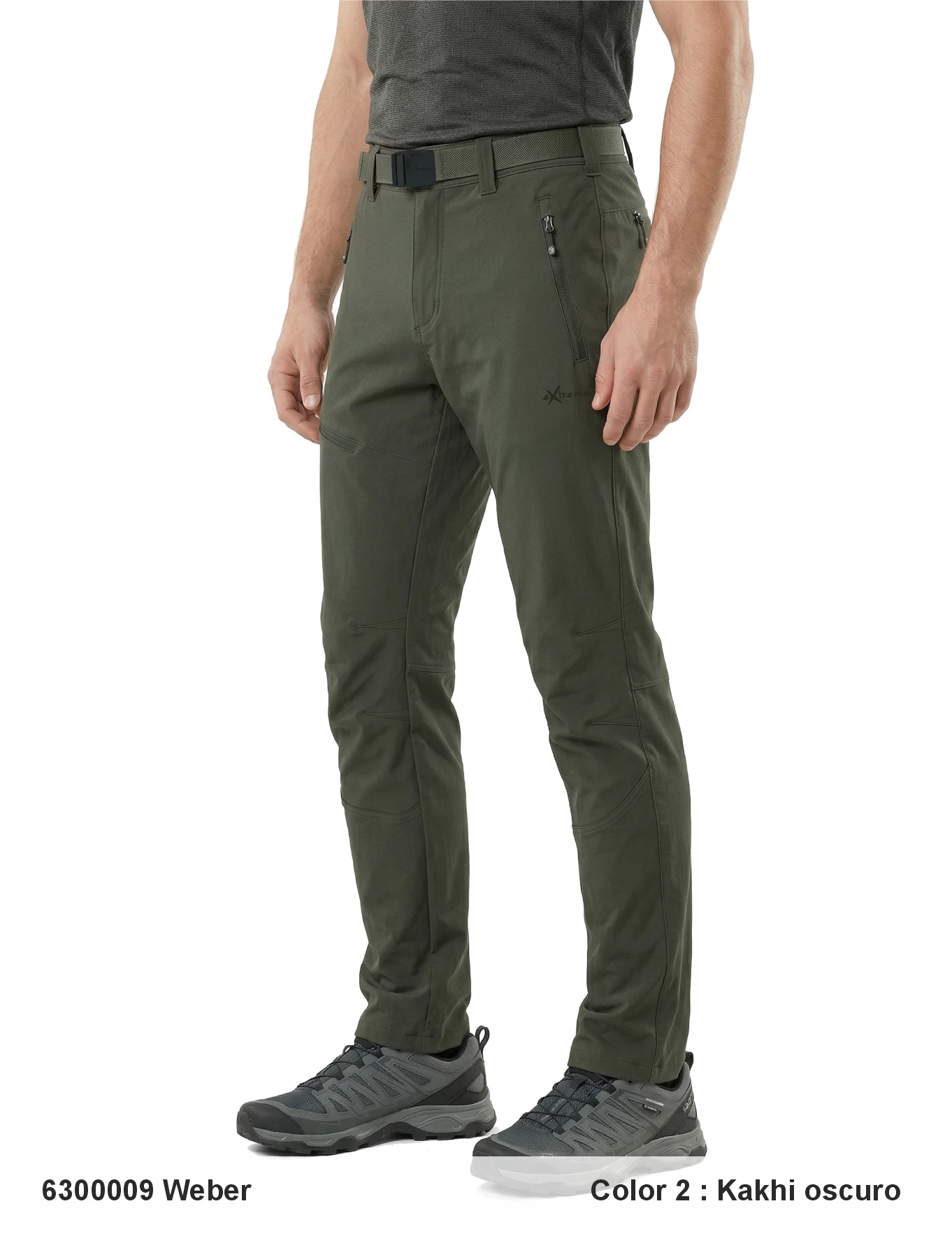 Descripción: Cintura semi-elástica con cierre de botón a presión, cinturón elástico ajustable, cinco bolsillos con cremalleras invertidas, pinzas en las rodillas, goma ajustable en los bajos, logo bordado.