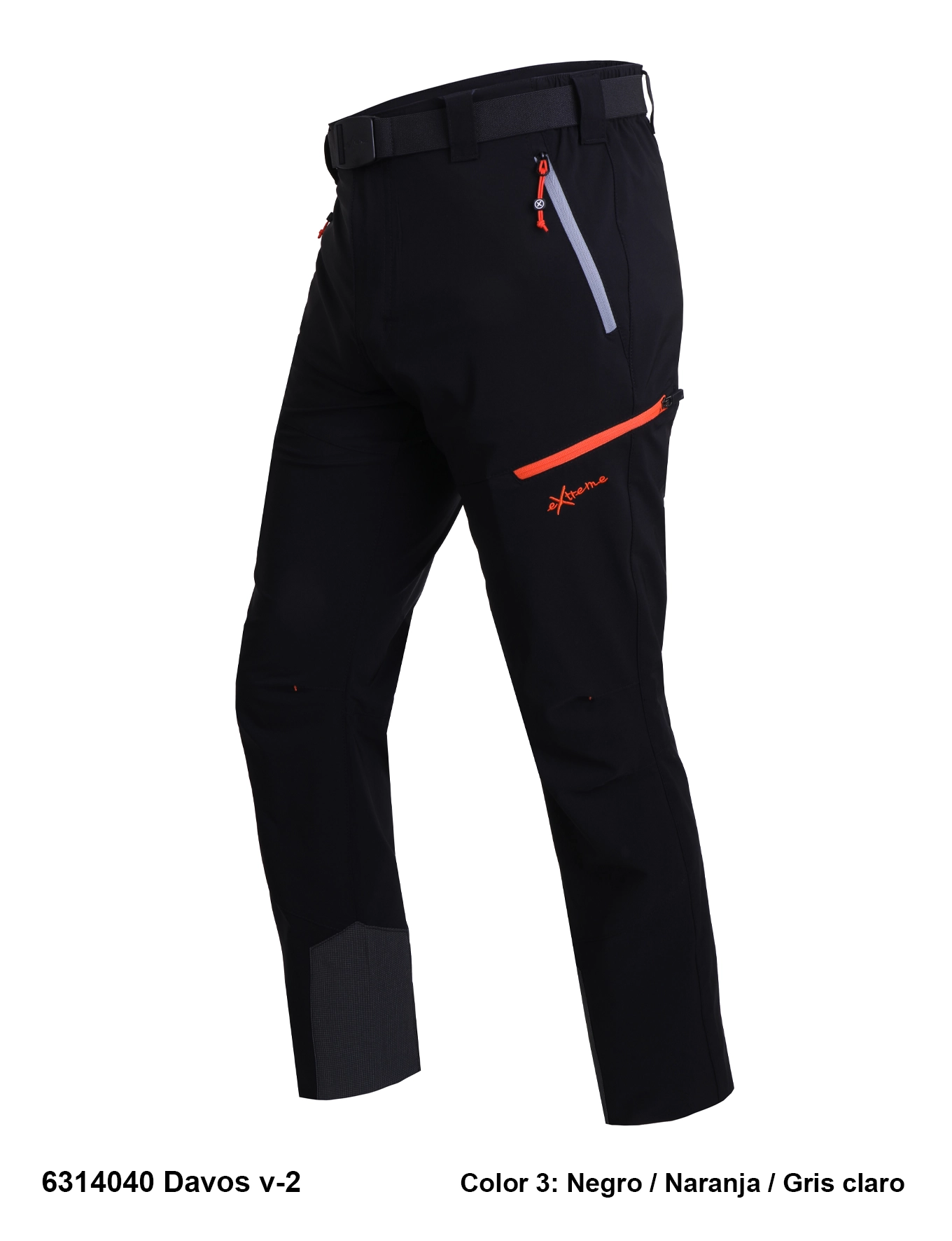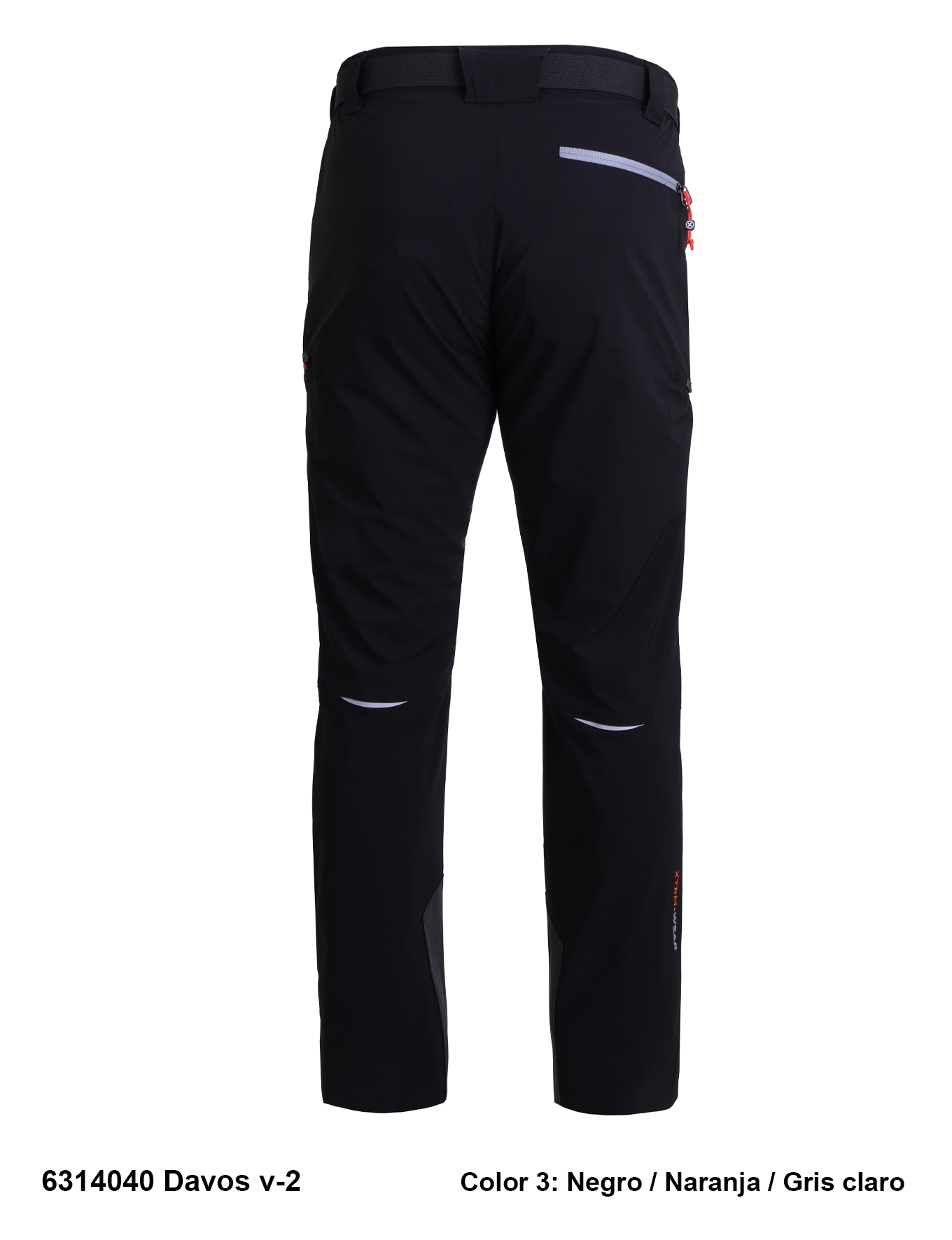 Descripción: Cintura semi elástica con cierre de botón corchete, cinturón elástico ajustable, cinco bolsillos con cremalleras invertidas a contraste, pinzas en las rodillas, tejido especial y goma ajustable en los bajos, ribete reflectante en la parte trasera, logo bordado.