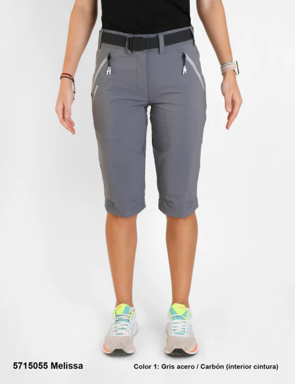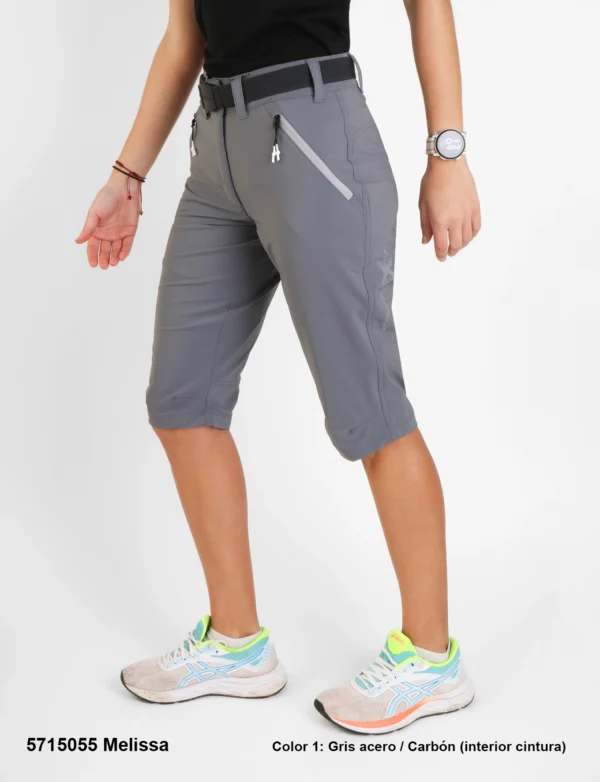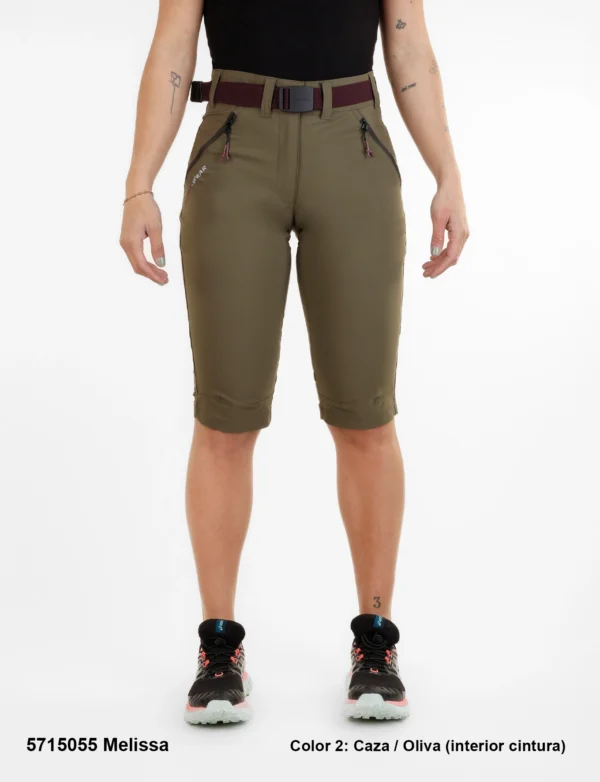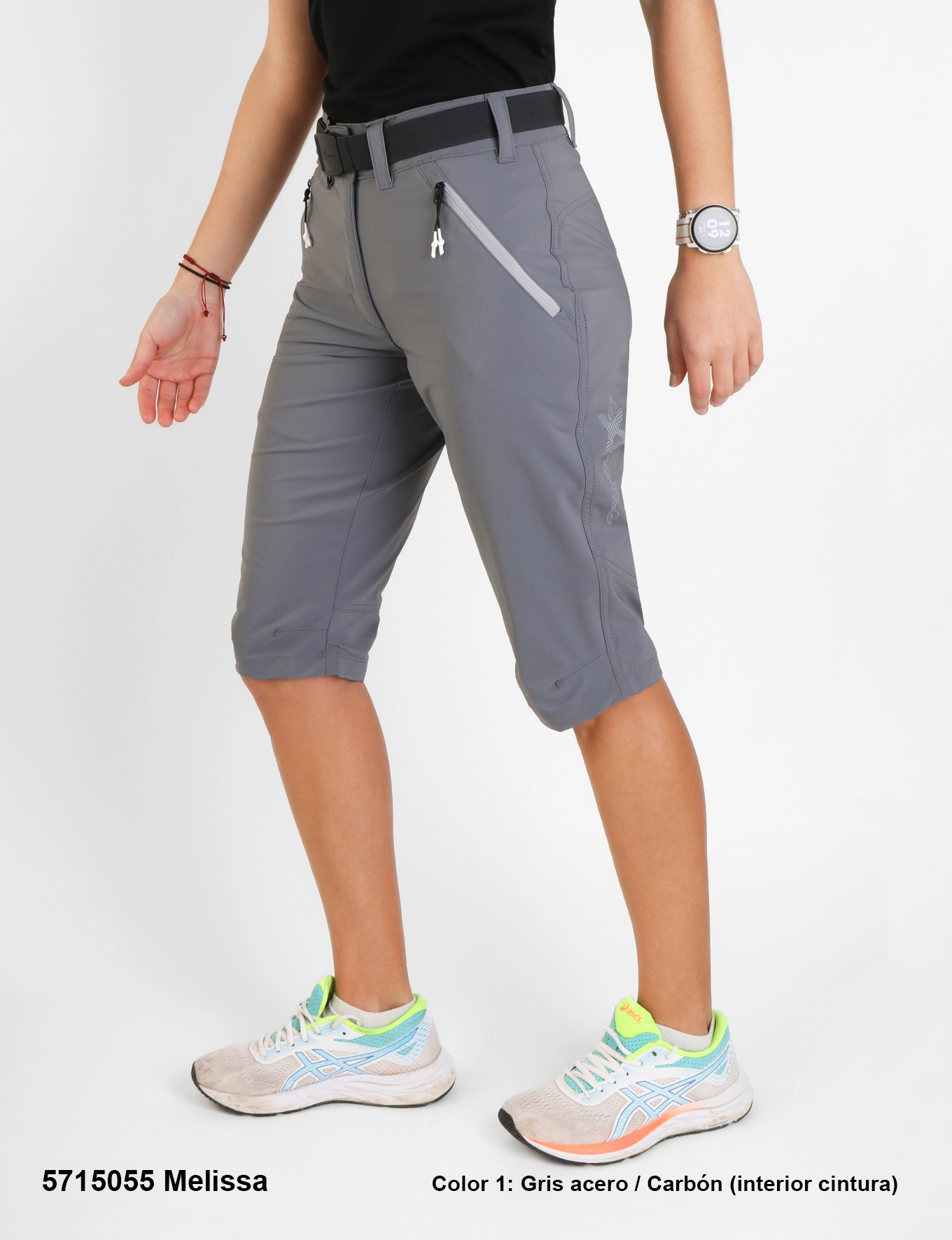 Descripción: Cintura con goma interior regulable, cierre con botón de corchete y cinturón elástico ajustable, dos bolsillos delanteros con cremalleras invertidas, pinzas en zona de rodilla, perforación laser en la parte trasera para mejorar ventilación, logos engomados a contraste.
