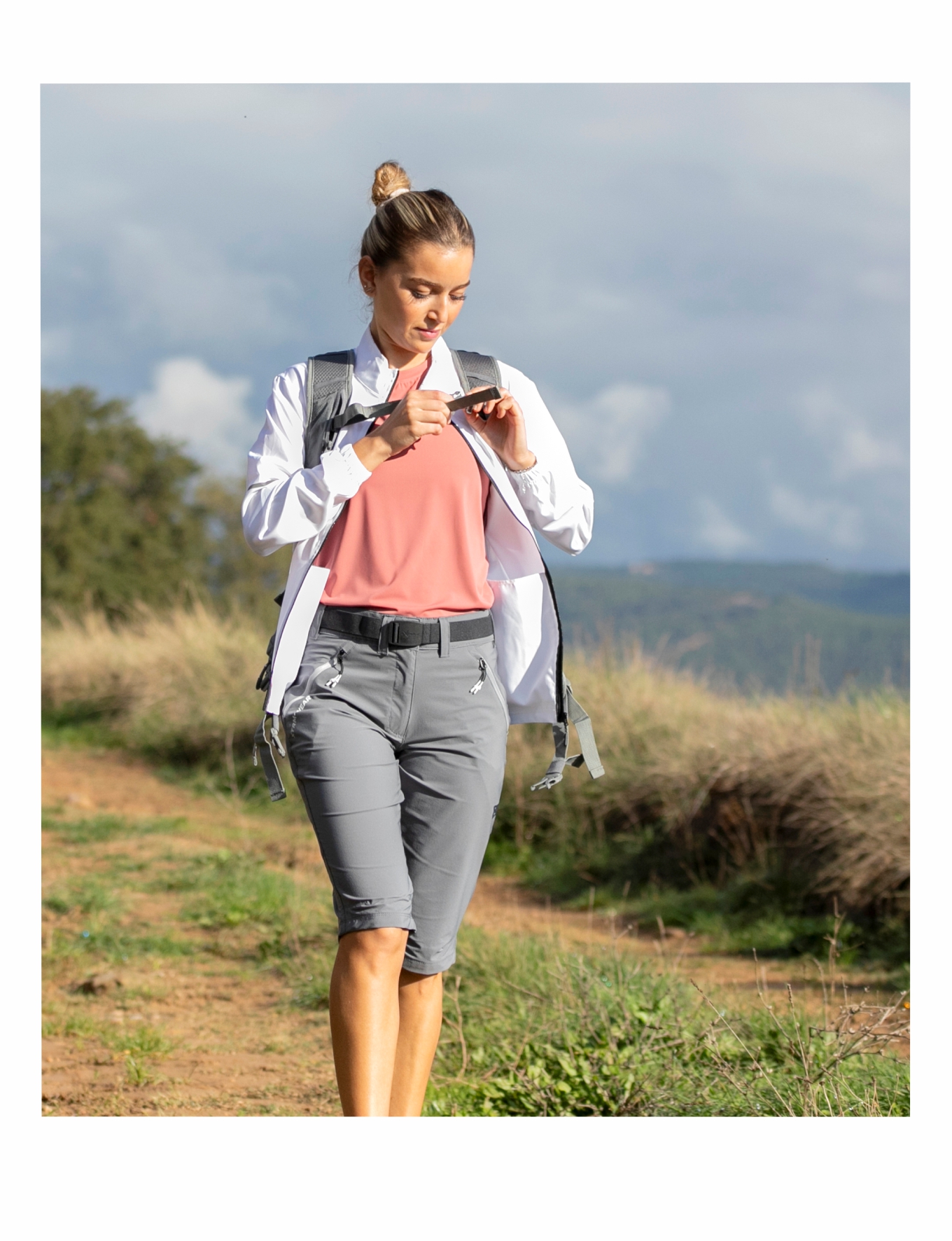 Prestaciones: Tejido tratado con DWR que repele el agua, protección solar UV 50º, secado rápido, transpirable, bielástico.