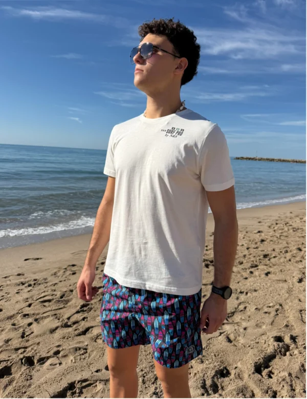 Descripción: Cintura elástica, cordón regulable, slip de rejilla, bolsillos delanteros rectos, bolsillo trasero con cremallera invertida bicolor, insignia de goma, etiqueta tejida con logo.