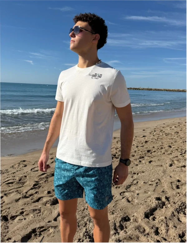Descripción: Cintura elástica, cordón regulable, slip de rejilla, bolsillos delanteros rectos, bolsillo trasero con cremallera invertida bicolor, insignia de goma, etiqueta tejida con logo.