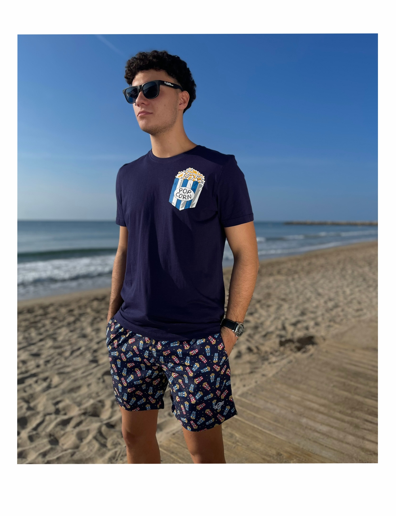 Descripción: Cintura elástica, cordón regulable, slip de rejilla, bolsillos delanteros rectos, bolsillo trasero con cremallera invertida bicolor, logo bordado.